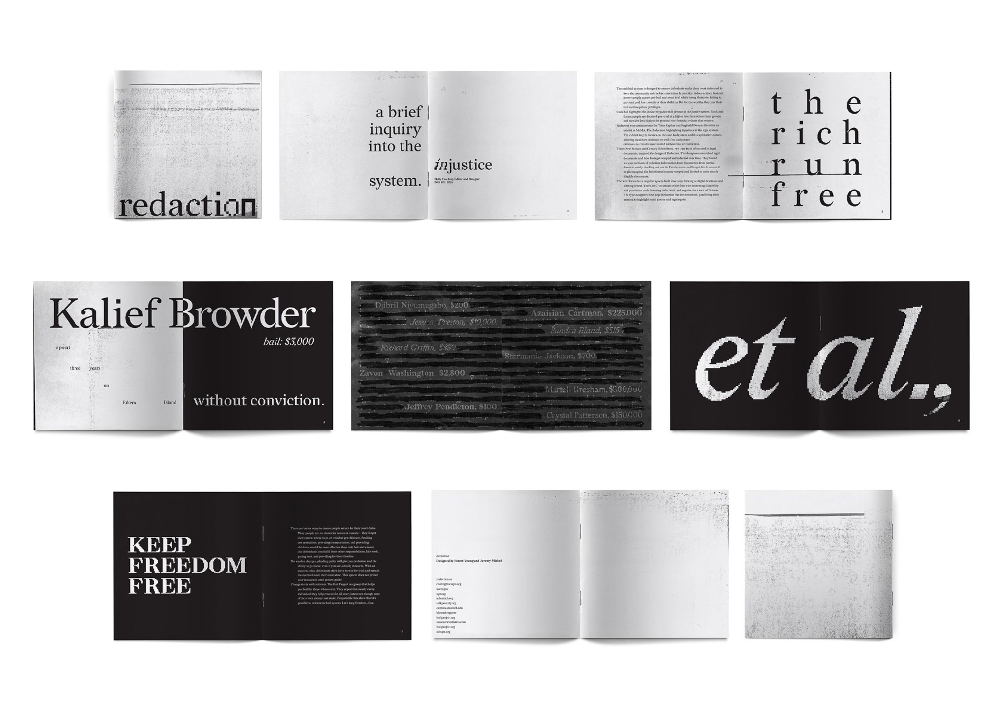 A type specimen for the font, Redaction.